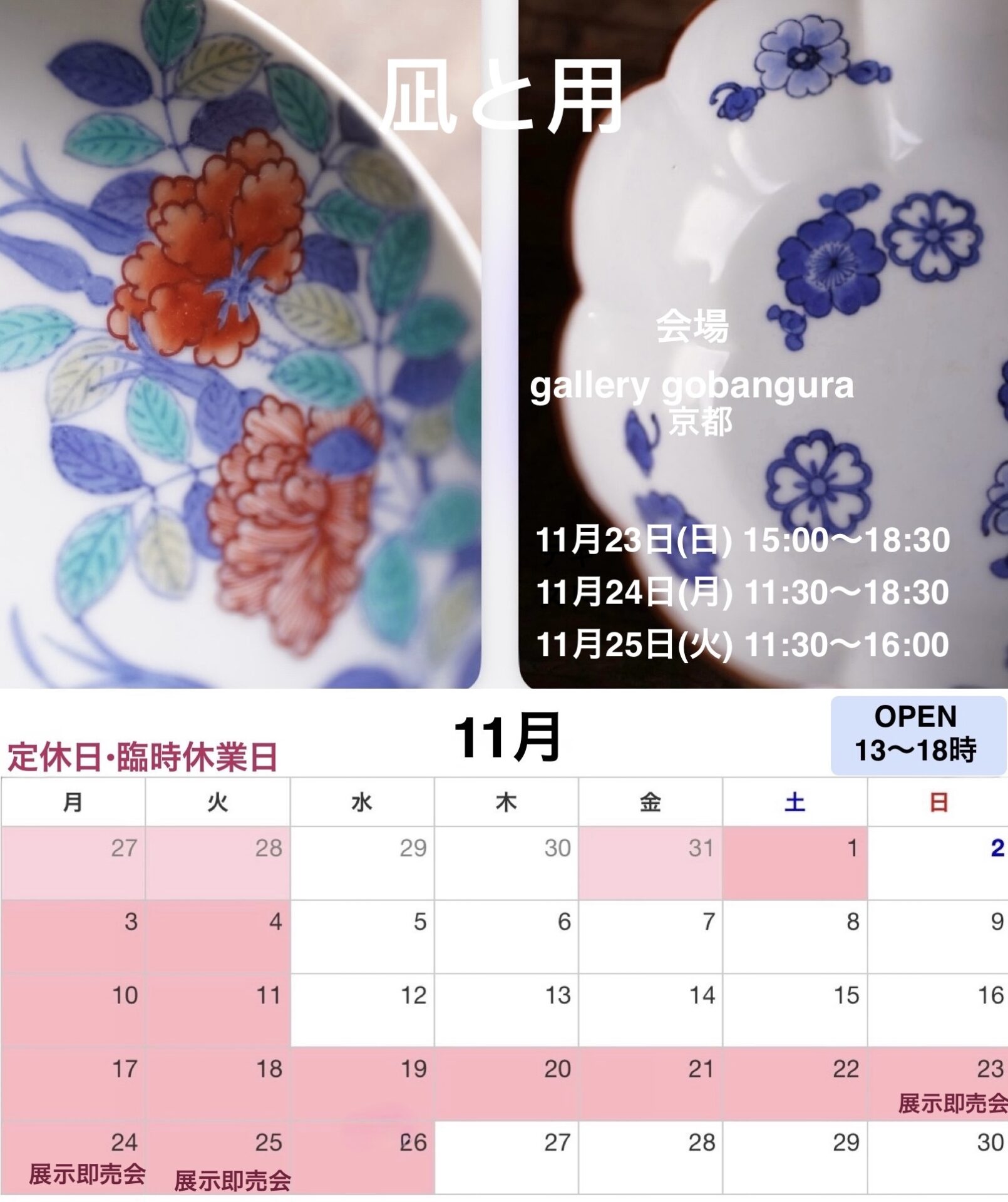 11月 営業日・臨時休業のご案内 展示即売会のご案内